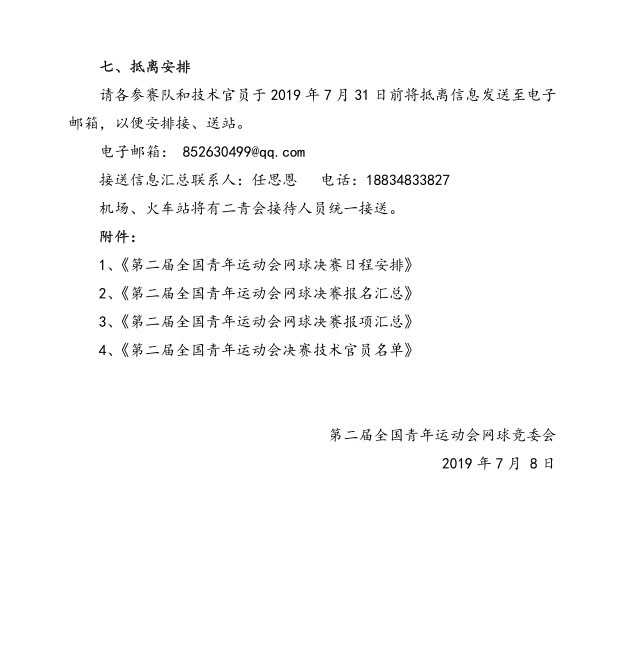 附件1:第二屆全國青年運動會網球決賽競賽日程