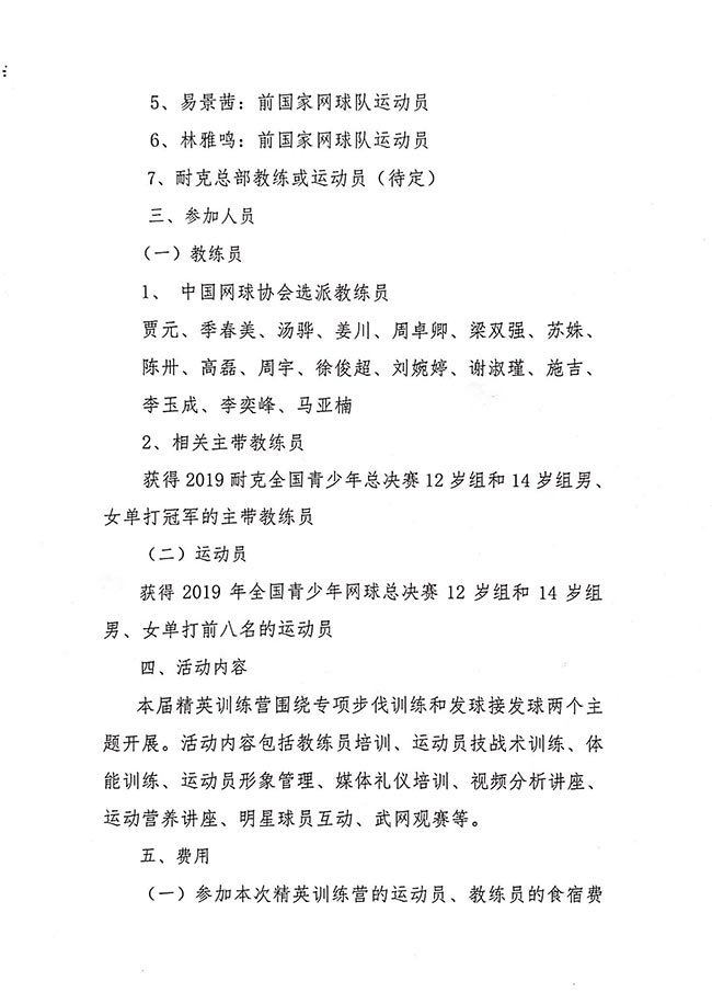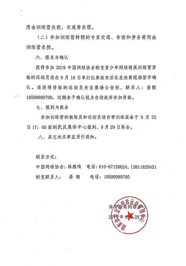 體育總局網(wǎng)球中心關(guān)于舉辦2019中國網(wǎng)球協(xié)會耐克青少年網(wǎng)球精英訓(xùn)練營的通知