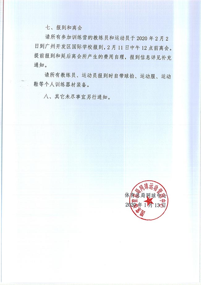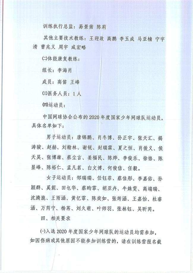 2020年國家青年網(wǎng)球隊訓練營補充通知