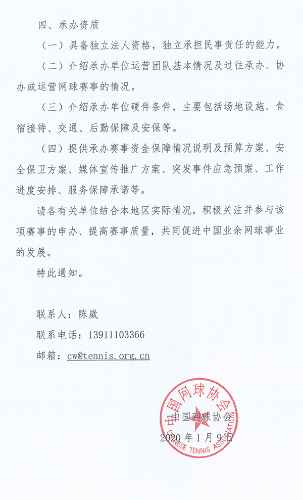 關(guān)于征集2020年中國業(yè)余網(wǎng)球公開賽分站賽承辦單位的通知