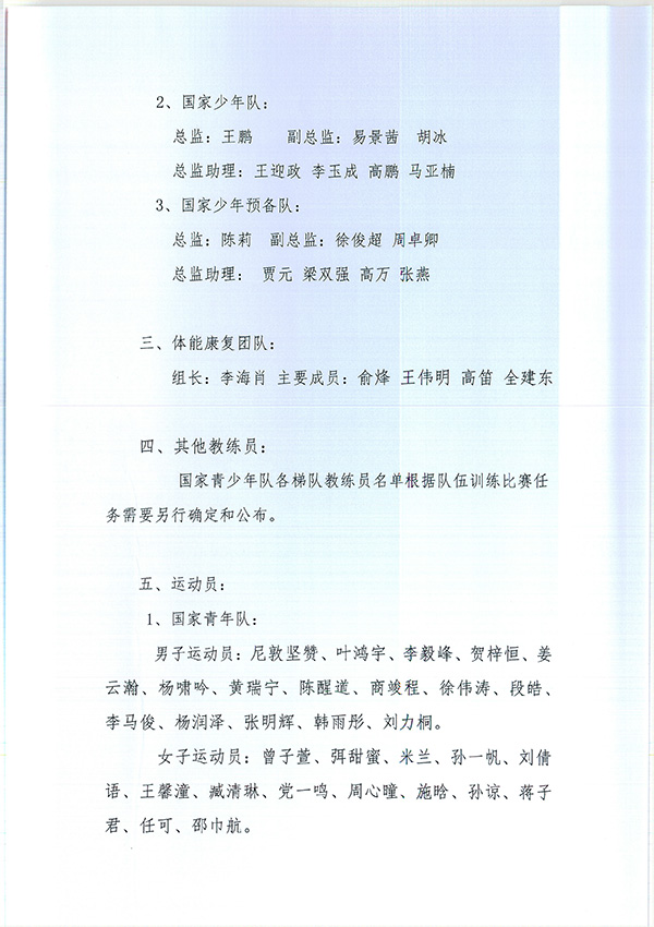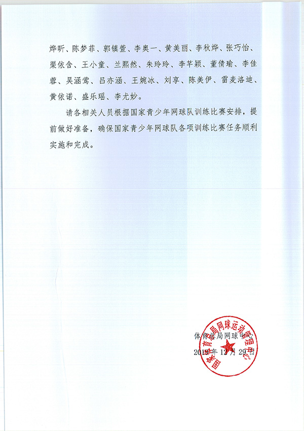 關于公布2020年國家青少年網球隊相關人員組成名單的通知