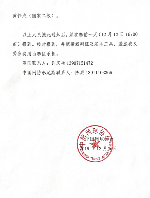 關于選派2019年中國業(yè)余網(wǎng)球公開賽年終總決賽技術(shù)官員通知