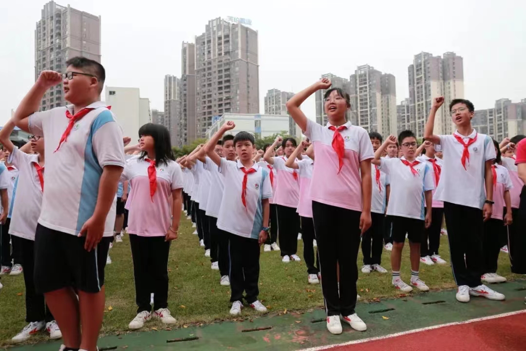 為弘揚愛國主義精神,激發(fā)學(xué)生們的愛國之心,教育廣大學(xué)生“牢記歷史,勿忘國恥”、自強不息、奮發(fā)圖強,9月19日,君蘭中學(xué)舉行了紀(jì)念“九一八”事變91周年活動暨國旗隊交接儀式。交接儀式一共分為九個流程。 1.主持人發(fā)言 主持人強調(diào):“歷史的硝煙已然散去,現(xiàn)實的威脅卻無時不在。銘記歷史,才能更好地前行?!彼M瑢W(xué)們好好學(xué)習(xí)革命先烈不畏艱難、勇往直前的精神。 隨后,主持人帶領(lǐng)全體學(xué)生在國旗下宣誓: “銘記歷史,勿忘國恥,吾輩自強,振興中華!” 2.國旗隊出旗 3.交接國旗 4.升國旗 5.老隊員代表講話 老隊員希望新隊員接過鮮艷的五星紅旗,傳承中國奮斗精神,銘記歷史,珍惜現(xiàn)在的時光,勇于面對困難,為早日實現(xiàn)偉大的中國夢而不懈奮斗。 6.新隊員代表講話 新隊員代表表示:“吾輩當(dāng)自強,勿忘國恥,發(fā)奮圖強,發(fā)揚中華奮斗精神,壯大我中華力量,為中華民族的復(fù)興而努力學(xué)習(xí)?!辈ьI(lǐng)大家舉起右手一起宣誓: “我志愿加入君蘭中學(xué)國旗護衛(wèi)隊,堅決服從命令,嚴(yán)格遵守紀(jì)律,敢于吃苦,甘于奉獻,以忠誠和擔(dān)當(dāng)捍衛(wèi)國旗尊嚴(yán),以愛國和奉獻揮灑青春熱血?!?/p> 7.頒獎儀式(老隊員榮譽證書、新隊員聘書) 張麗清副校長和黃一新副校長為國旗隊老成員頒發(fā)榮譽證書 ★ ★ ★ ★ ★ 巫春柳副書記和唐書榮主任為國旗隊新成員頒發(fā)聘書 8.學(xué)校領(lǐng)導(dǎo)講話 張麗清副校長激勵同學(xué)們要學(xué)習(xí)革命先烈的堅強斗志和偉大的愛國主義精神,永葆責(zé)任感,做到有志氣、有骨氣、有底氣,在披荊斬棘中勇往直前,在砥礪奮斗中錘煉本領(lǐng),擔(dān)當(dāng)起中華民族偉大復(fù)興的重任,為祖國的發(fā)展奉獻青年人的力量。 9.國旗隊和領(lǐng)導(dǎo)合影 ★ ★ ★ ★ ★ 編輯:廖夢 審核:曾亞 攝影:廖夢,黃文波,鐘雄