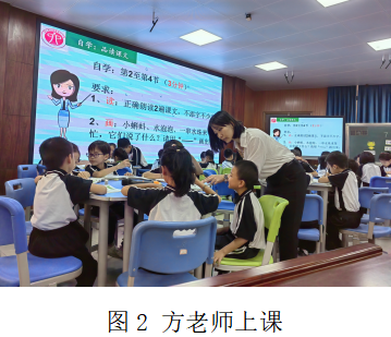 方老師踐行“246課堂教學(xué)模式”:“二心”:素養(yǎng)為核心,學(xué)為中心;“四為”:以問題為先導(dǎo),以活動為特征,以思維為主線,以實踐運用為保證;“六學(xué)”:導(dǎo)學(xué)、自學(xué)、互學(xué)、展學(xué)、結(jié)學(xué)、遷學(xué)。各項學(xué)習(xí)活動環(huán)環(huán)相扣,體現(xiàn)了新課程標(biāo)準(zhǔn)下的優(yōu)良課堂生態(tài),讓師生沉浸在愉快的學(xué)習(xí)中。
