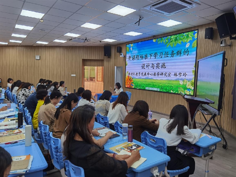 為進(jìn)一步提升第二教研共同體語文教師對新課程標(biāo)準(zhǔn)下學(xué)習(xí)任務(wù)群的設(shè)計(jì)與實(shí)施能力,切實(shí)為語文教師搭建研討、交流的平臺(tái),全面提高教學(xué)質(zhì)量。10月11日下午,龍江鎮(zhèn)“3+N”區(qū)域聯(lián)合教研第二共同體舉行以“新課程標(biāo)準(zhǔn)下學(xué)習(xí)任務(wù)群的設(shè)計(jì)與實(shí)施”為主題的聯(lián)合教研活動(dòng),由龍江城區(qū)中心小學(xué)承辦。順德區(qū)教育發(fā)展中心教研員林雪玲老師、龍江鎮(zhèn)小學(xué)語文教研員陳金梅校長、楊和鎮(zhèn)中心小學(xué)語文教師和第二共同體成員校校長及全體語文老師一同參與本次教研活動(dòng)。