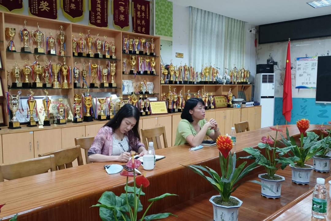 最后,大家移步會(huì)議室進(jìn)行座談。郭麗華校長(zhǎng)從北海小學(xué)近幾年校園校貌的改變;“全童教育”品牌特色建設(shè);勞動(dòng)教育、粵劇、民族管弦樂、游泳、書香校園、魅力課堂等特色項(xiàng)目的傳承與打造;打造精品校本課程等方面作詳細(xì)匯報(bào),并提出學(xué)校教育教學(xué)工作方面的困惑以及需求。