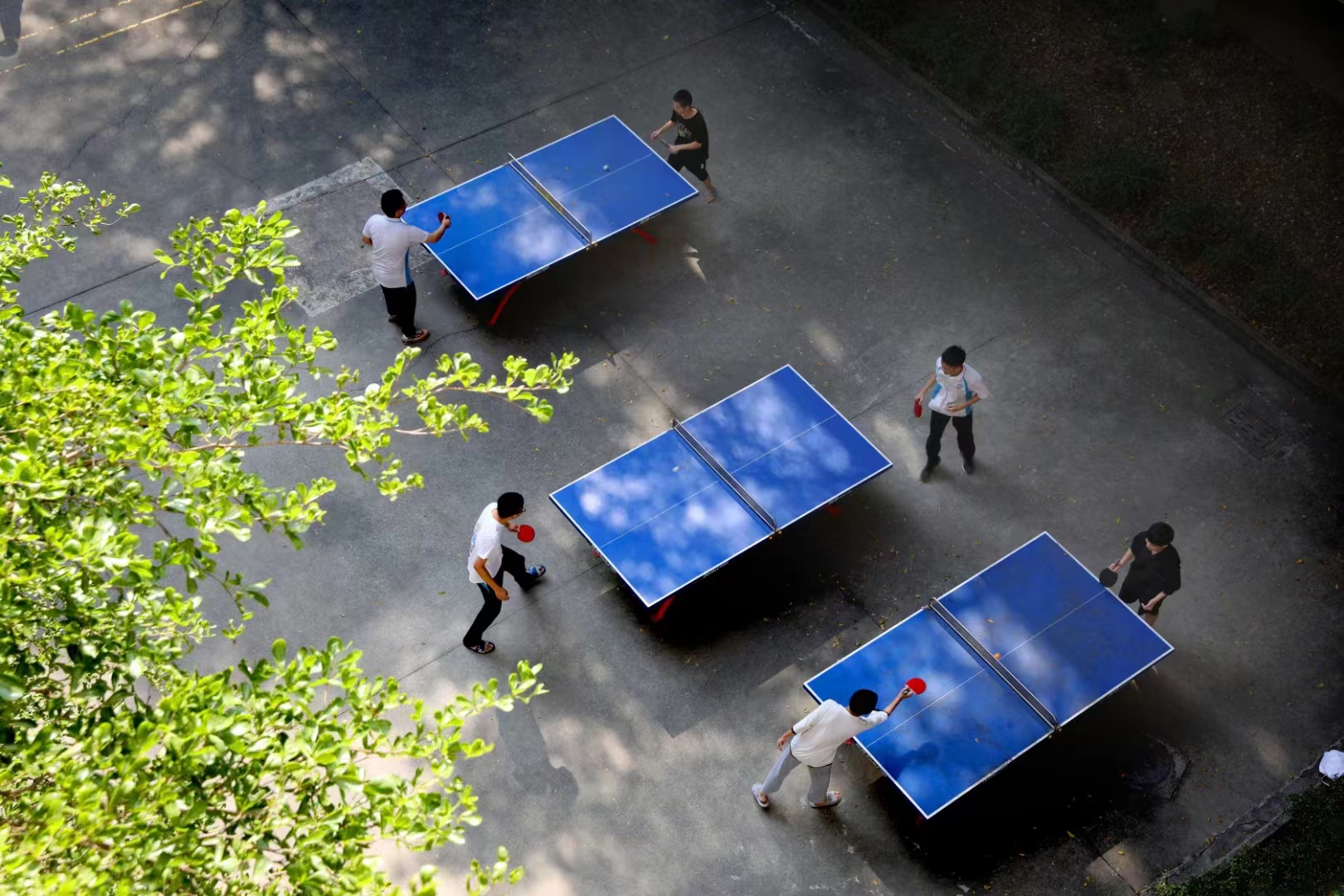 充分利用空間創(chuàng)設運動場地。實訓樓間、操場中、樹木下的羽毛球場、乒乓球桌觸目可見,課間、放學后籃球和足球場更是學生的活動“勝地”,體育活動氛圍在不經(jīng)意中營造起來。