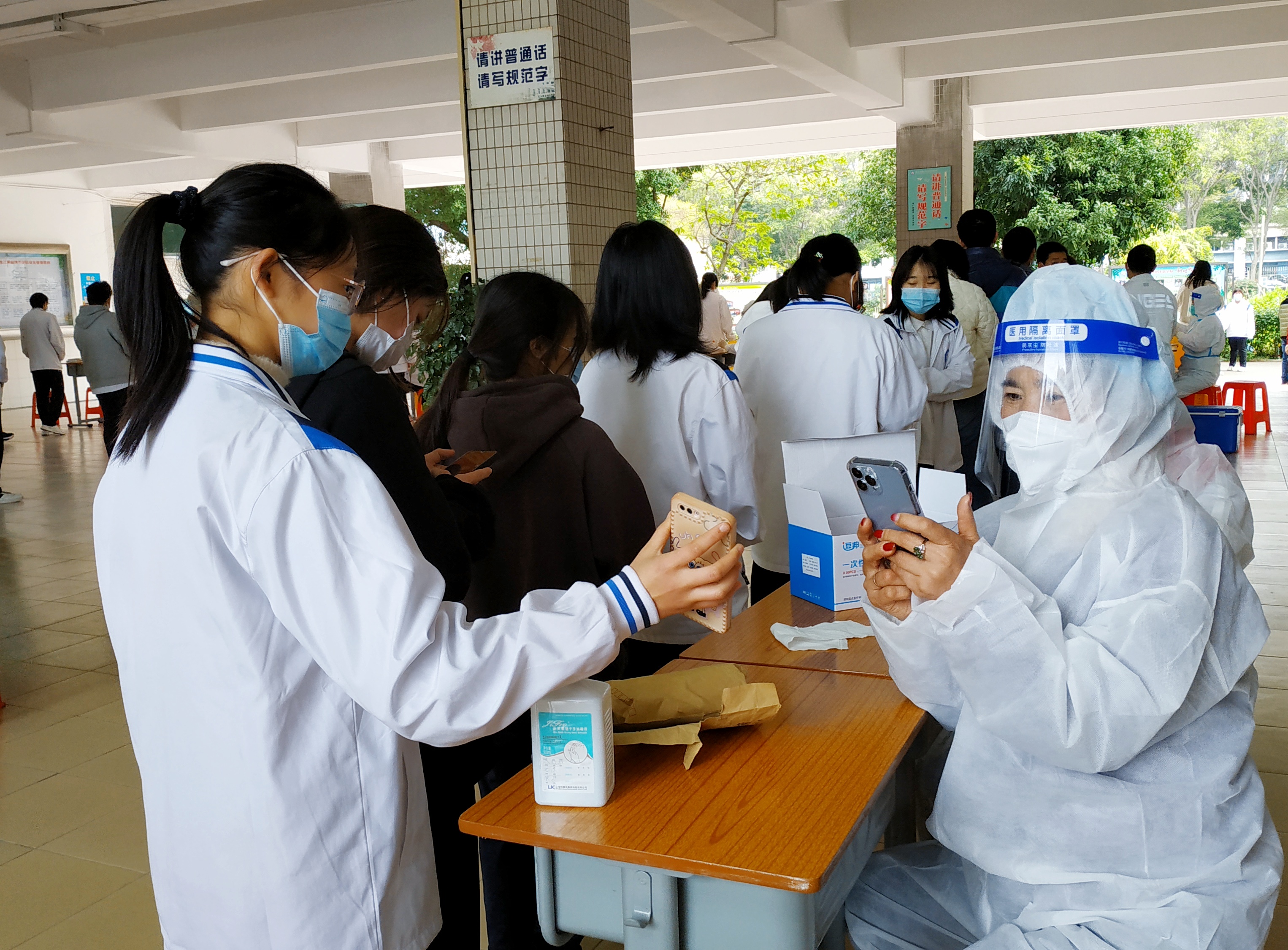 回顧起來,學校每次承擔的全員核酸檢測任務從不輕松。還記得較為緊迫的一次,學校在周日下午2時40分接到通知,靜謐少人的校園,在學校黨總支的帶領下,由德育處、總務處等各部門組成的防疫抗疫工作團隊以迅雷之勢在20分鐘內最優(yōu)配備所有人員、物資,下午3時準時開門迎來校內外學生前來有序檢測,完成檢測人數(shù)之多儼然體現(xiàn)了龍職擔當,學校高度負責的態(tài)度與強大的組織力量深深撼動著老師們,整個大會至少自發(fā)地響起三次熱烈的掌聲。