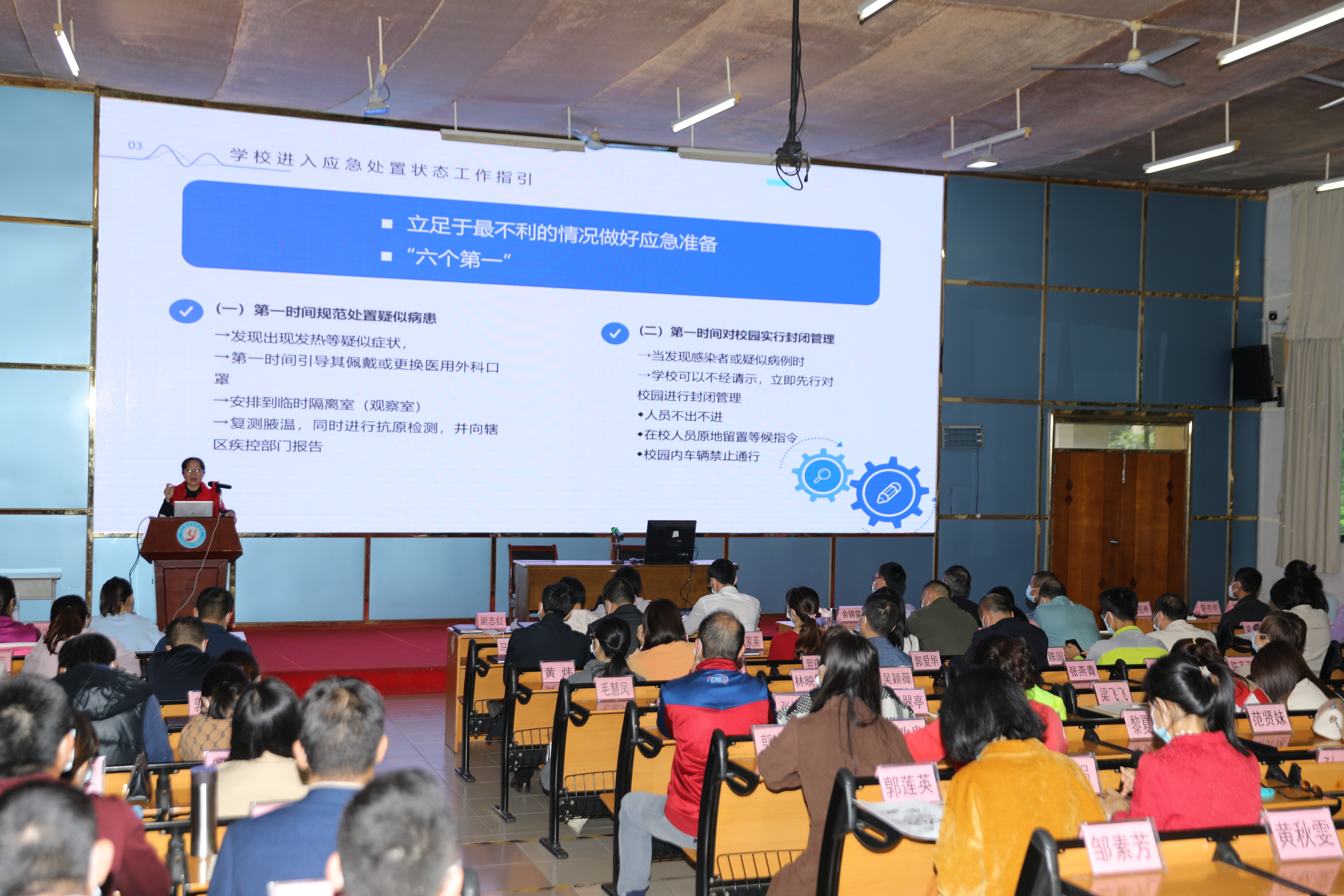 11月7日下午,龍江職校在階梯教室召開了新冠肺炎疫情防控專題會議,由學校黨總支副書記謝志紅主持,全體教職工參加。