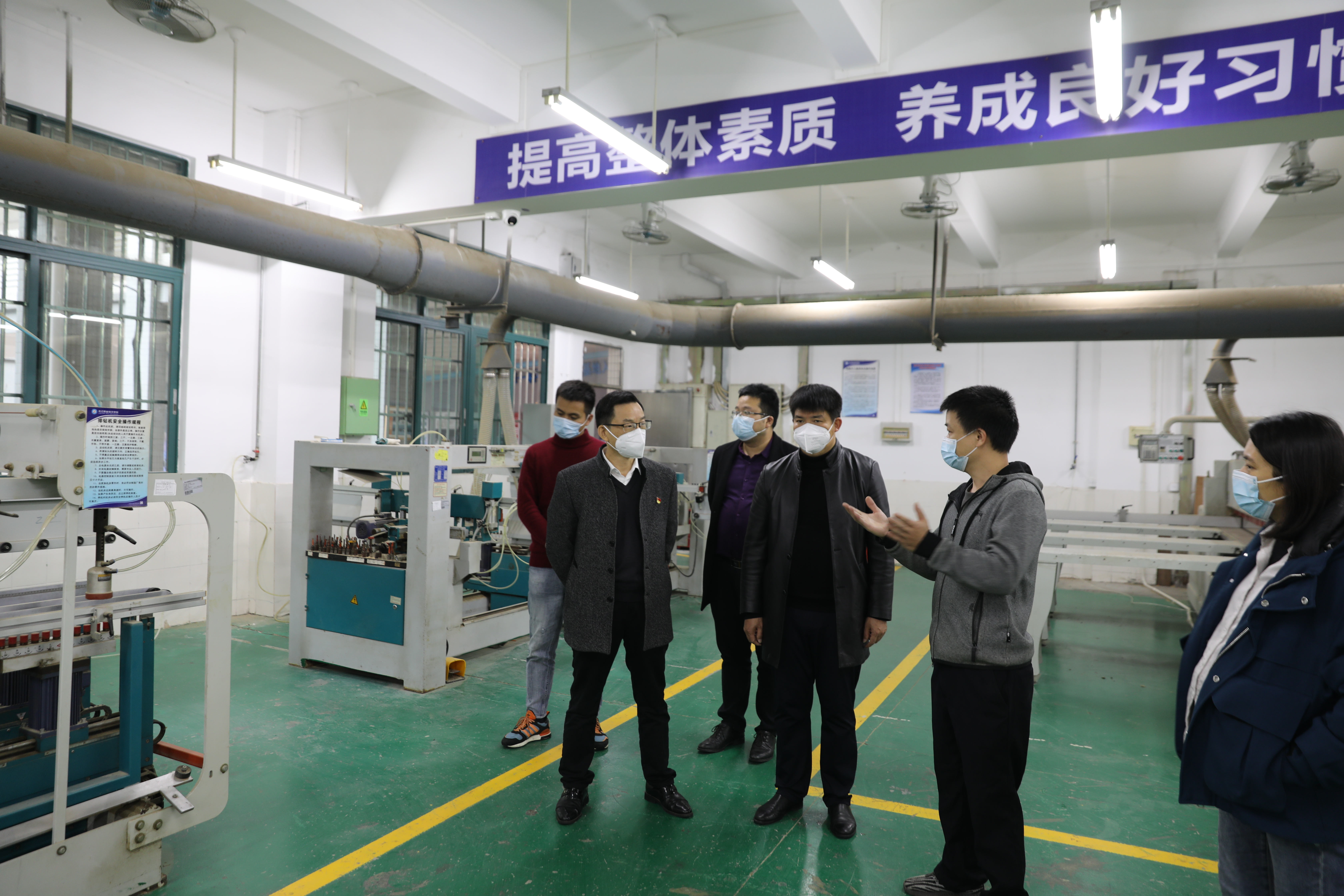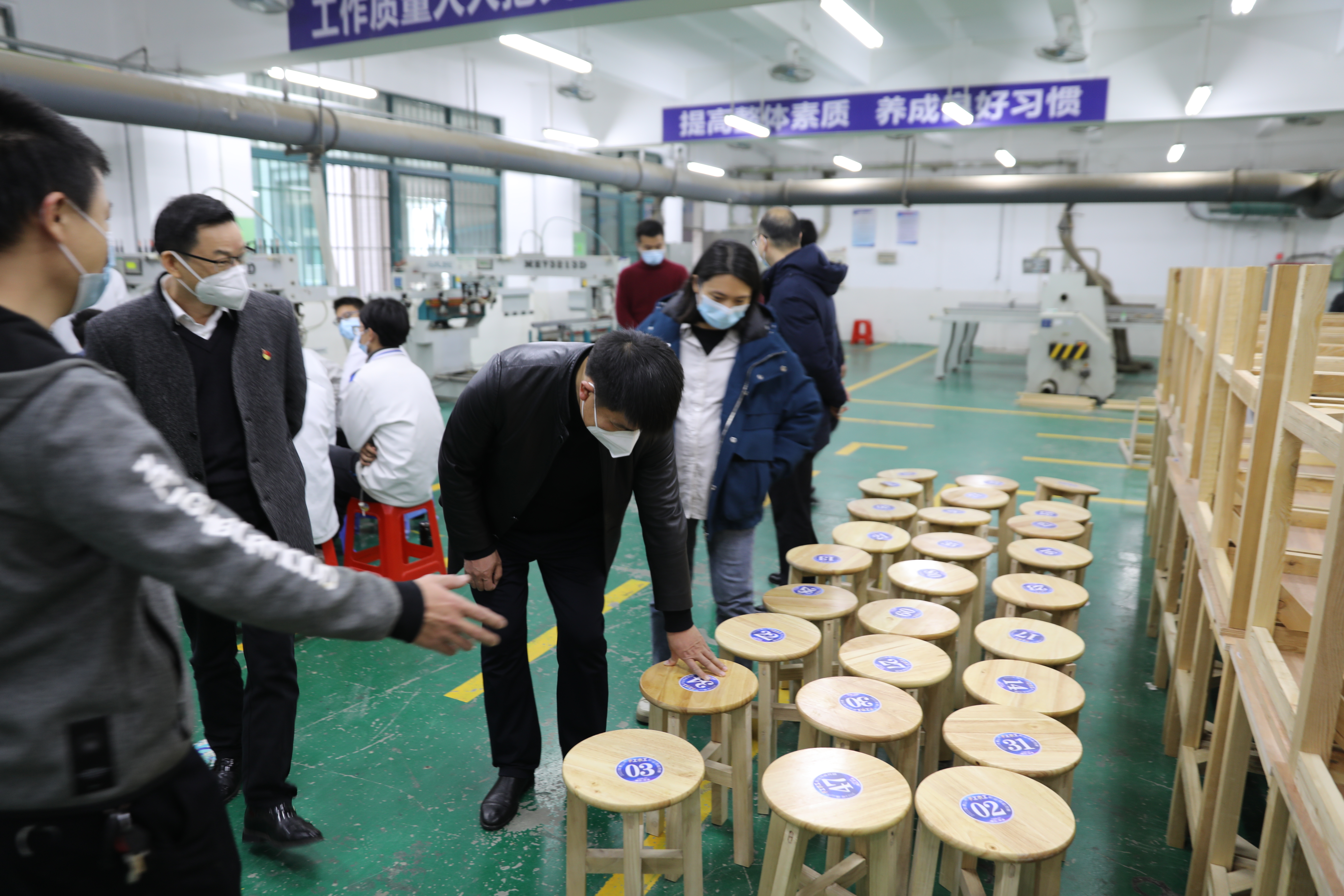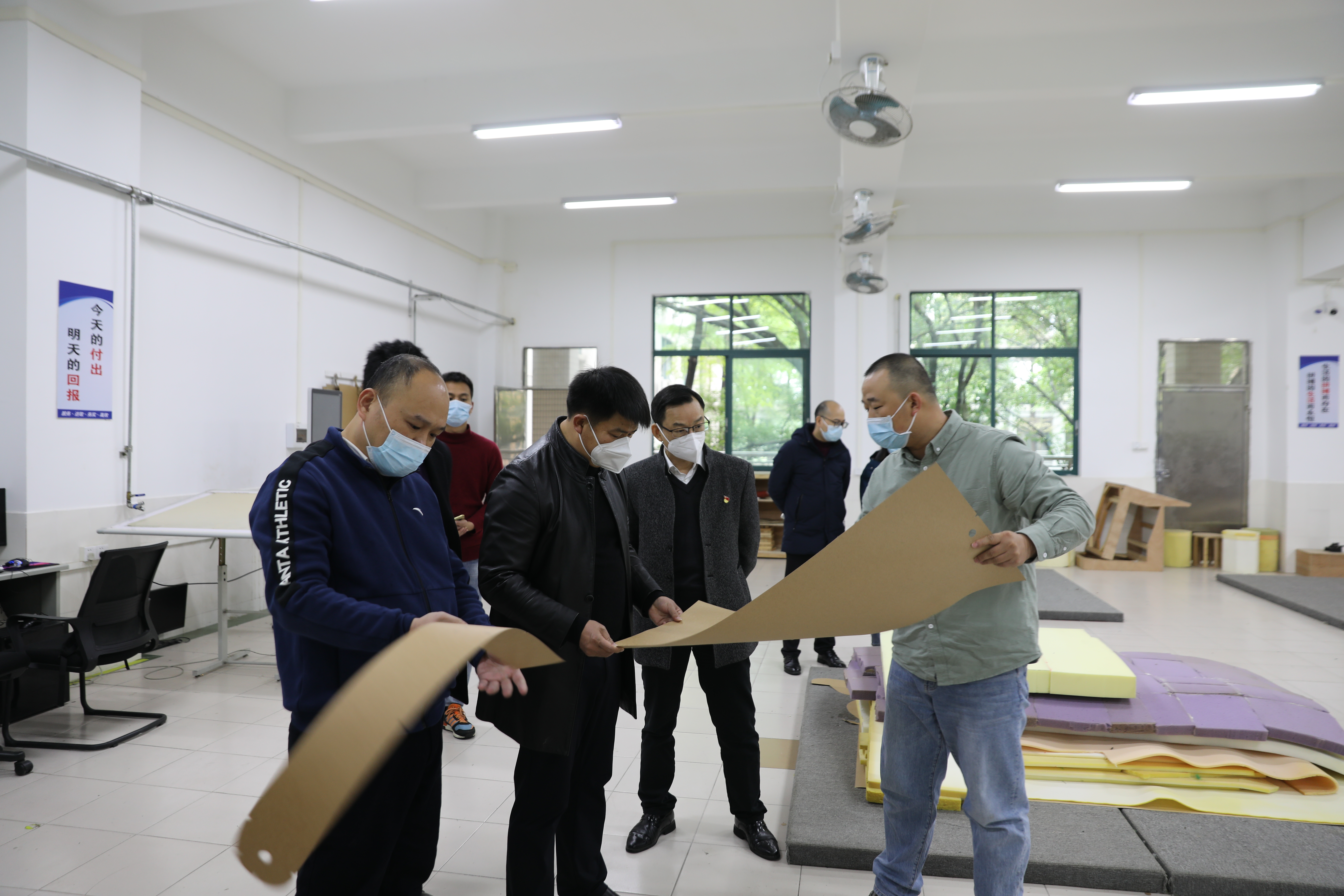 在陳校長的帶領(lǐng)下,潘書記一行考察參觀了龍職家具創(chuàng)意班、黃亮彬創(chuàng)新工作室、軟體家具實訓(xùn)室等家具專業(yè)系列場室。參觀過程中,我校家具骨干教師不時為來賓介紹專業(yè)實訓(xùn)的情況。場室完善的設(shè)備設(shè)施,師生的操作規(guī)范有序,引來潘書記一行駐足贊賞。