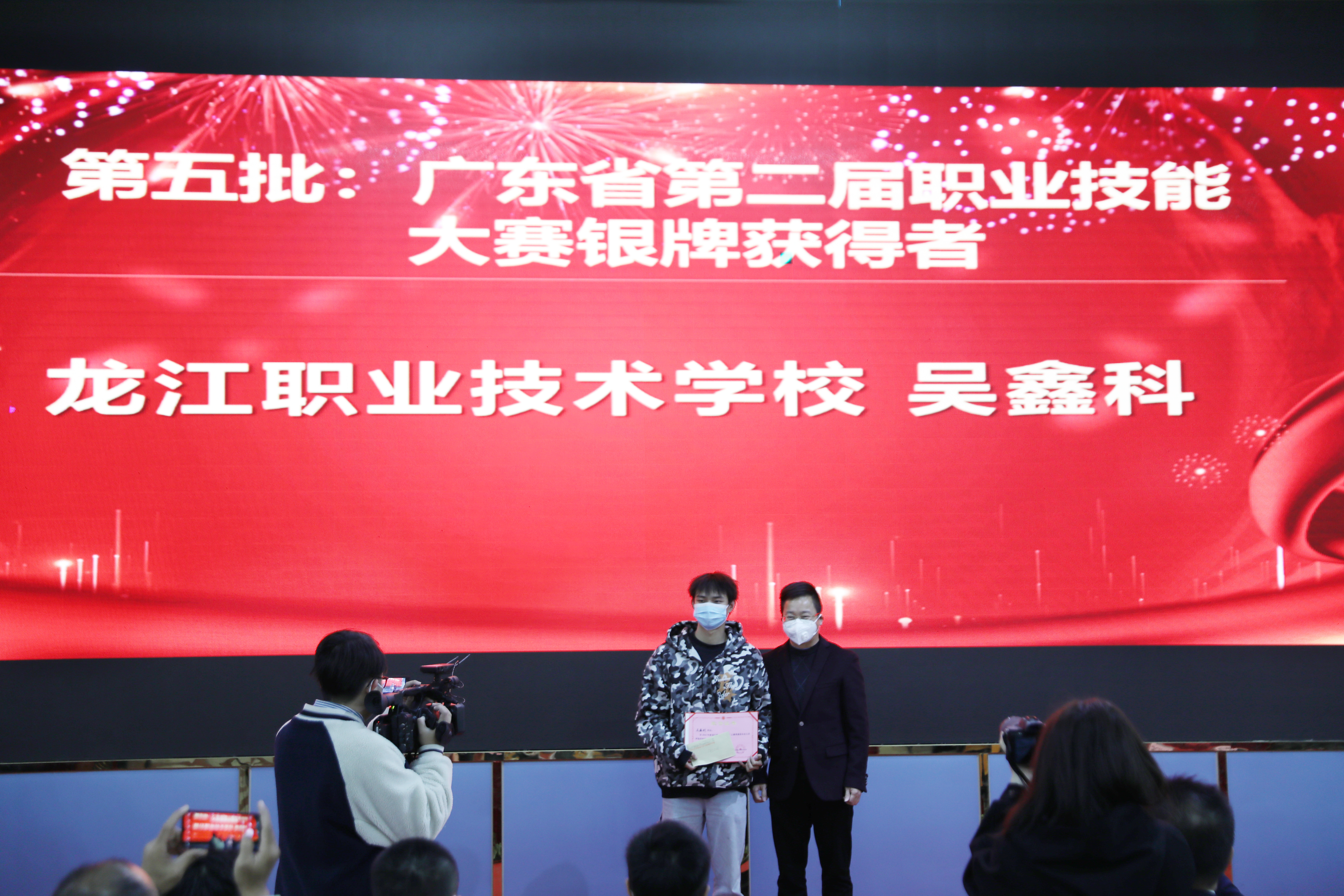 龍江職業(yè)技術(shù)學(xué)校黨總支書(shū)記、校長(zhǎng)陳義明為龍江鎮(zhèn)最美廣東技工頒獎(jiǎng)