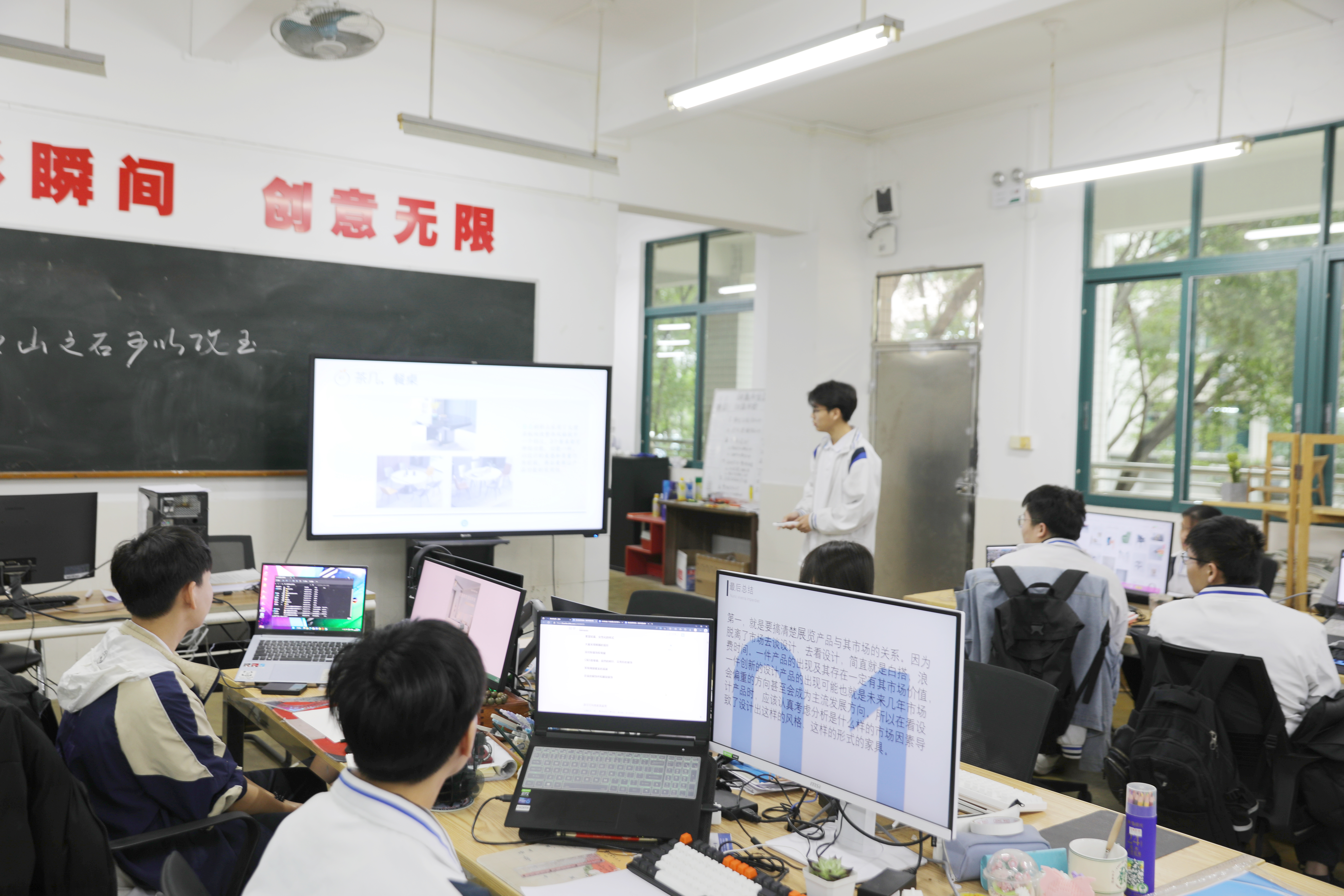 參觀家具創(chuàng)意班,學(xué)生正進(jìn)行項(xiàng)目講解