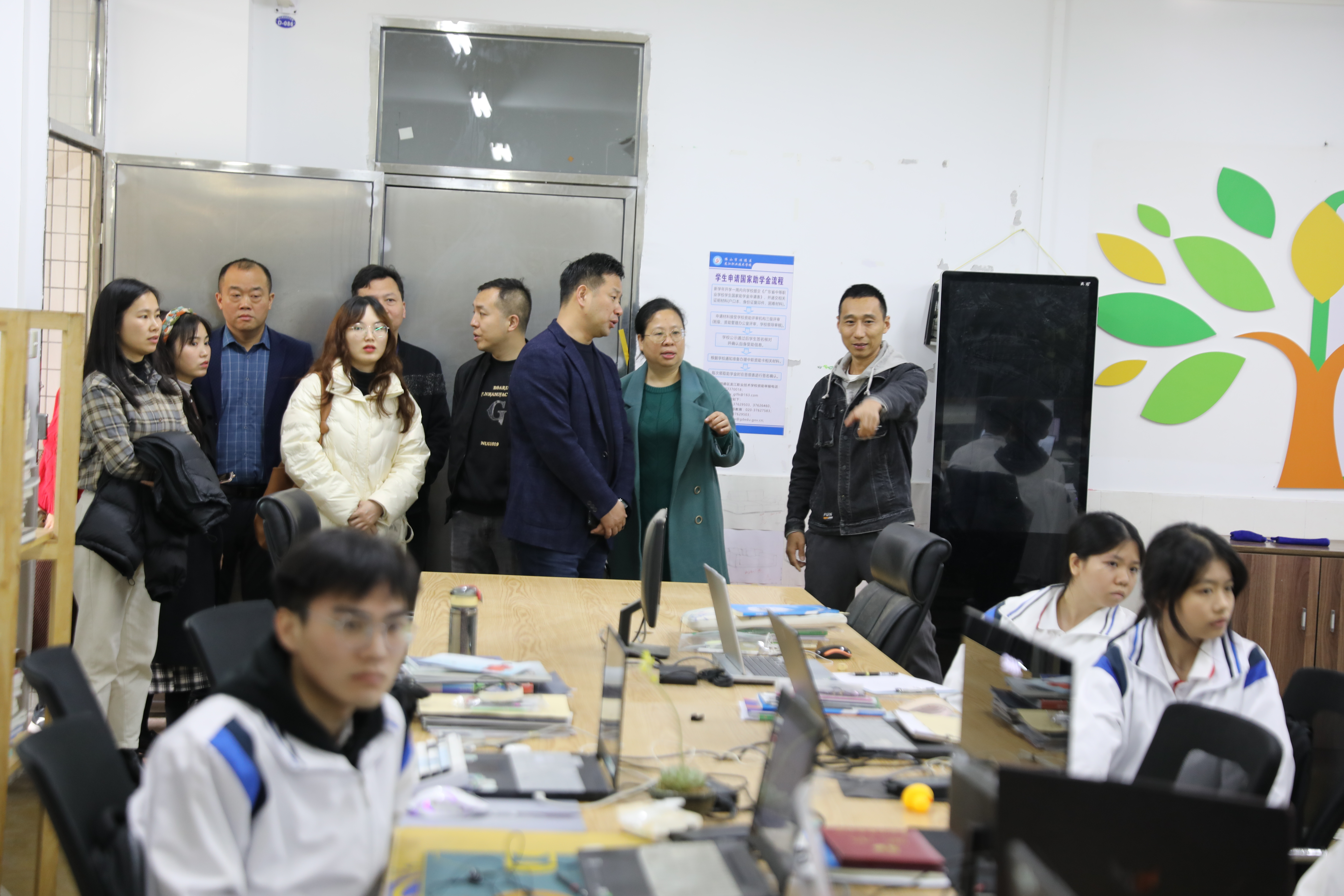 翁源職校副校長鐘敏敏、吳海華一行依次參觀了我校辦公區(qū)、龍職傳媒中心、楊伊純名班主任工作室、家具創(chuàng)意班、3D打印備賽室、軟體家具實(shí)訓(xùn)室、世界木工大賽實(shí)訓(xùn)室等場室。來賓不時(shí)與我校專業(yè)教師探討教學(xué)管理問題,還對龍職綠色校園的自然環(huán)境和完善的場室設(shè)置給予了較高的評價(jià)。特別是在各實(shí)訓(xùn)場室,來賓們興致盎然,大家駐足傾聽師生講解,細(xì)察同學(xué)的實(shí)訓(xùn),稱贊不已。