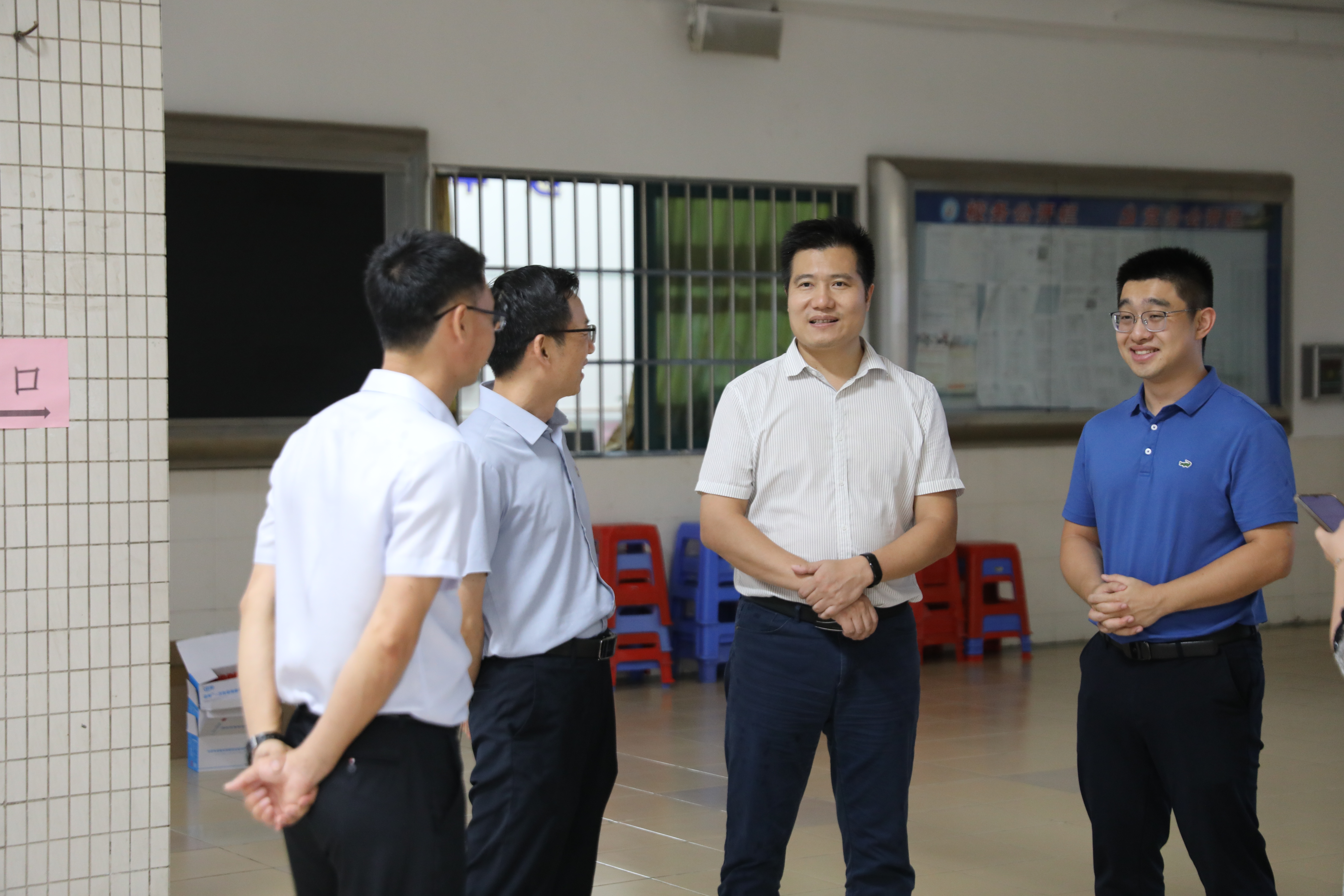 伍鎮(zhèn)長(zhǎng)(右二)與劉委員(右一)與龍職校領(lǐng)導(dǎo)就學(xué)校發(fā)展進(jìn)行深入交流
