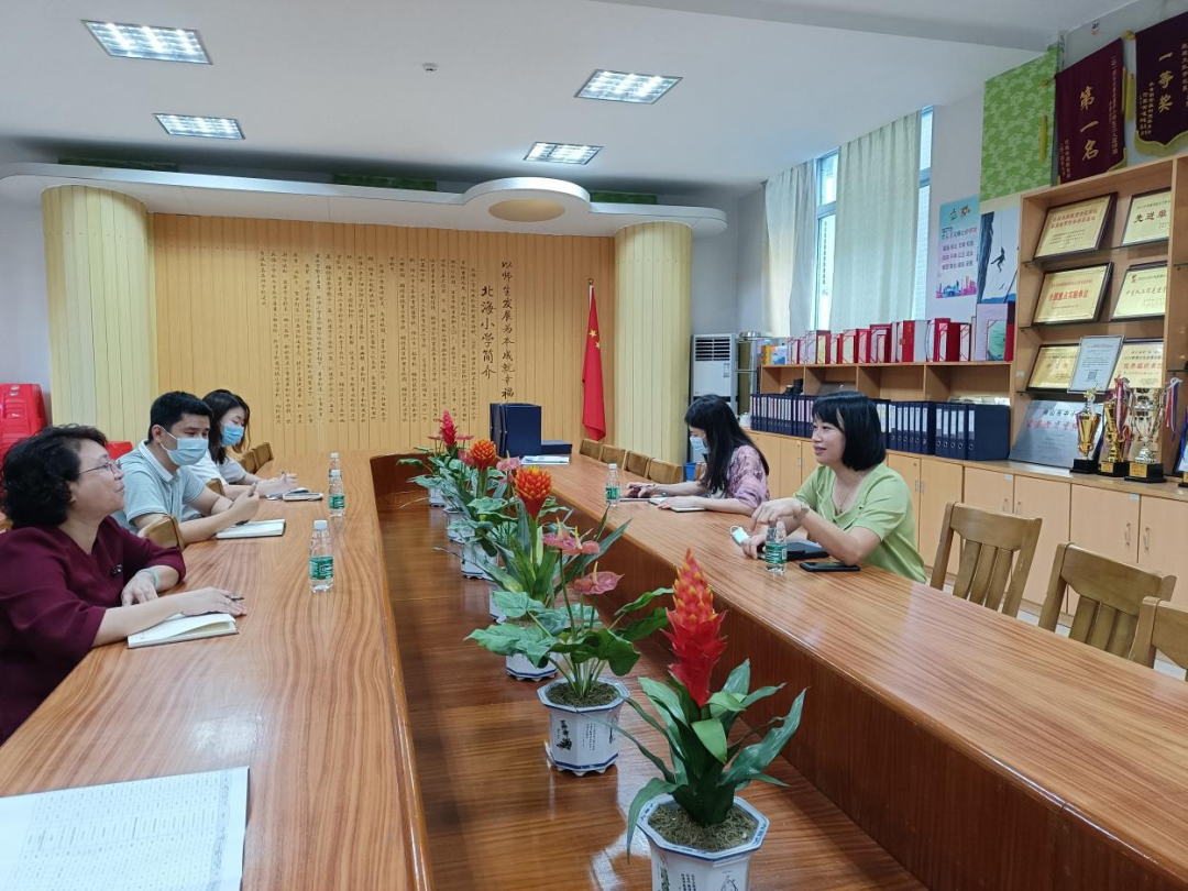最后,大家移步會議室進行座談。郭麗華校長從北海小學近幾年校園校貌的改變;“全童教育”品牌特色建設;勞動教育、粵劇、民族管弦樂、游泳、書香校園、魅力課堂等特色項目的傳承與打造;打造精品校本課程等方面作詳細匯報,并提出學校教育教學工作方面的困惑以及需求。