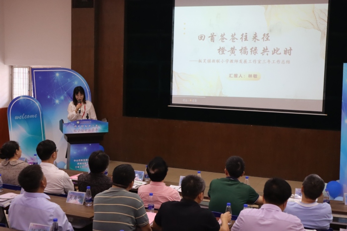 在工作匯報環(huán)節(jié),八名子工作室主持人進行了工作室三年工作總結(jié)匯報,各工作室分別基于不同的研究方向,詳細(xì)地闡述了三年來工作室“教—學(xué)—研”的全過程,并從取得的成果和存在的問題中,尋找工作室未來的研究方向,明確下一步的工作目標(biāo)。從主持人精彩的匯報中,讓人深刻感受到通過“三年聚首,蓄力賦能”“專家引領(lǐng),指點迷津”“經(jīng)驗分享,采石攻玉”“課堂練兵,理念碰撞”等研修過程帶來的收獲和喜悅。