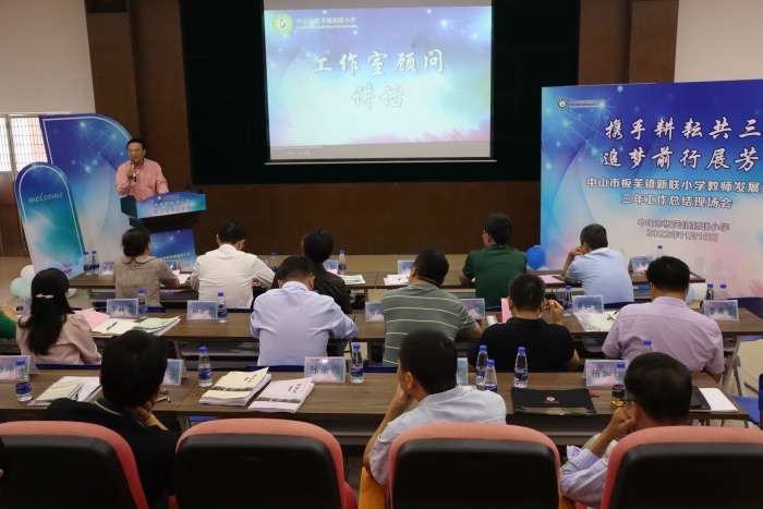 板芙鎮(zhèn)新聯(lián)小學(xué)教師工作室于2019年成立,由八個子工作室組成。三年來,各工作室扎根實踐,深入研究,引領(lǐng)教師專業(yè)成長,有力地提升了教育教學(xué)水平。為進一步總結(jié)經(jīng)驗,推進下一階段發(fā)展,11月18日上午,新聯(lián)小學(xué)開展了教師發(fā)展工作室三年工作總結(jié)現(xiàn)場會活動?;顒友堉猩绞小叭鞭k公室負(fù)責(zé)人周立勝,原中山市教育督導(dǎo)員、新聯(lián)小學(xué)教師工作室總顧問吳子干以及工作室導(dǎo)師團隊成員到場指導(dǎo),板芙鎮(zhèn)教育和體育事務(wù)中心主任謝柳青和中心全體人員,板芙鎮(zhèn)中小學(xué)校長,各學(xué)校行政、教師代表參與了本次活動。