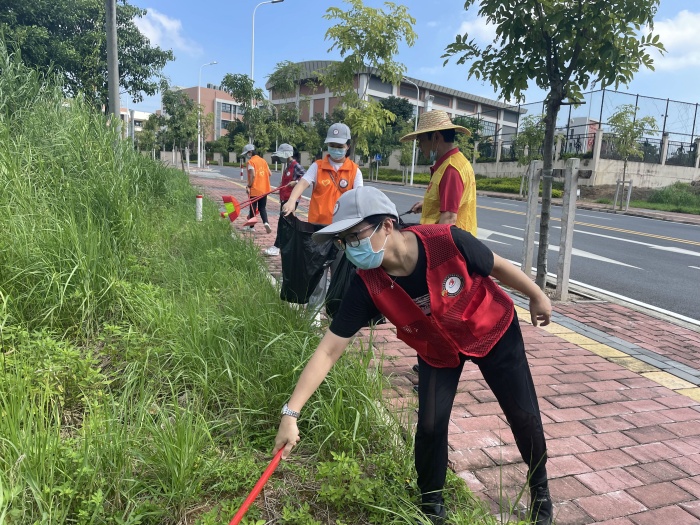 博凱小學(xué)唐秉晶校長、學(xué)校行政、黨團(tuán)志愿者及親子義工部分成員共50余人,分六個(gè)小組,志愿清掃校園,重點(diǎn)清理了校園內(nèi)外及周邊的衛(wèi)生黑點(diǎn)、難點(diǎn),尤其是易造成安全事故的濕滑青苔。盡管天氣炎熱,但大家干勁十足,熱情高漲,在大家的努力,校園和周邊環(huán)境得到了進(jìn)一步的改善。