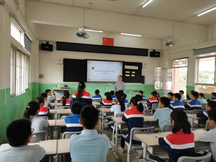 活動(dòng)隨著旗北小學(xué)張曼老師打開心理“魔盒”拉開帷幕。張老師通過觀察魔盒認(rèn)識(shí)獨(dú)特、優(yōu)點(diǎn)大爆炸講獨(dú)特、觀看視頻辨別獨(dú)特到最后“一杯水的容量”突破獨(dú)特四個(gè)環(huán)節(jié)將“獨(dú)一無二的我”這個(gè)主題層層升華,引領(lǐng)學(xué)生悅納自己、相信自己,效果明顯。第二堂課是旗北小學(xué)劉彩平老師帶來的“富強(qiáng)”主題班會(huì)課,劉老師以手機(jī)為線索,引發(fā)學(xué)生了解中國(guó)通信的發(fā)展以及背后諸多迎難而上的故事,教育學(xué)生從小立大志為強(qiáng)國(guó)貢獻(xiàn)自己的力量。以小見大,有自己的高度。第三節(jié)是石岐第一城小學(xué)蔡鈺煬老師的《綽號(hào)有分寸》,課堂通過一系列的活動(dòng)使學(xué)生了解綽號(hào)對(duì)自己和他人的影響,學(xué)會(huì)對(duì)他人表達(dá)自己對(duì)綽號(hào)的感受,學(xué)生在一次次的活動(dòng)中對(duì)自我有了更深刻的認(rèn)識(shí)。