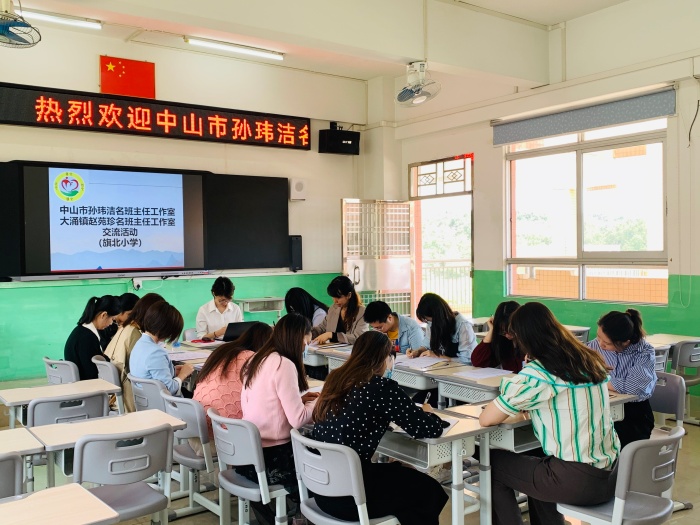 2022年5月17日上午,中山市孫瑋潔名班主任工作室與大涌鎮(zhèn)趙苑珍名班主任工作室交流活動(dòng)在大涌鎮(zhèn)旗北小學(xué)舉行,市孫瑋潔名班主任工作室主持人孫瑋潔、大涌鎮(zhèn)嵐田中心小學(xué)萬彬彬副校長(zhǎng)、旗北小學(xué)胡小琴副校長(zhǎng)、大涌鎮(zhèn)趙苑珍名班主任工作室主持人趙苑珍以及兩個(gè)工作室的學(xué)員三十余人參加了本次的研課活動(dòng)。