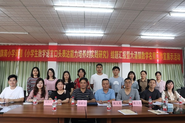 為全面落實(shí)旗南小學(xué)“課題引領(lǐng)、以研促教”的教育規(guī)劃,積極推動(dòng)數(shù)學(xué)科研課題工作的順利開(kāi)展,2021年11月11日下午,旗南小學(xué)舉行了數(shù)學(xué)課題《小學(xué)生數(shù)學(xué)語(yǔ)言口頭表達(dá)能力培養(yǎng)的實(shí)踐研究》結(jié)題匯報(bào)暨大涌鎮(zhèn)數(shù)學(xué)名師工作室展示活動(dòng)。大涌鎮(zhèn)教育和體育事務(wù)中心數(shù)學(xué)專干袁文慶老師、名師工作室主持人梁鉅全副校長(zhǎng)、旗南小學(xué)梁綺琴校長(zhǎng)、名師工作室全體成員共同參加了此次報(bào)告會(huì)。