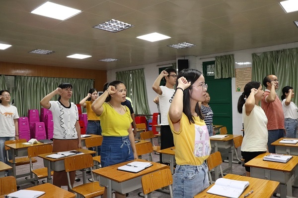 本次活動有四 項議程:第一項議程是由中山市優(yōu)秀教師林鳳美老師進行個人先進事跡簡介,第二項議程是由大涌鎮(zhèn)教育事務指導中心周景照主任做《心存敬畏,擔當有為》為主題的師德教育專題講座。他指出師風師德的重要性,并對我校師德師風建設提出了新的要求:一是敬畏我們所從事的職業(yè)。二是敬畏教育的法律法規(guī)。三是做一個學生喜歡家長同事認可有成就感的老師。這對我們往后的師德建設工作有著重要的作用和指導意義。第三項議程是由梁綺琴校長部署學校2020學年師德師風建設系列工作,明確了師德師風建設的指導思想,目標任務,實施步驟以及組織保障。最后一項議程是全體教師進行師德師風建設宣誓儀式,并在承諾書上簽名。