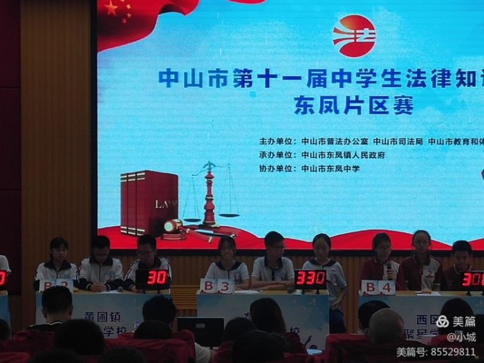 為推動“法治進校園”,持續(xù)開展在校青少年普法教育活動,促進法治建設(shè)和校園文化有機結(jié)合,提高青少年的法律素養(yǎng),培養(yǎng)青少年的明辨是非能力、自我保護意識和守法觀念,營造良好的校園法治文化氛圍,中共中山市委宣傳部、中山市依法治市辦公室、中山市人大常委會教科文衛(wèi)、中山市教育和體育局、中山市司法局、中山廣播電視臺等多部門一起舉辦中山市第十一屆中學(xué)生法律知識競賽。