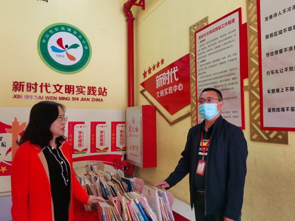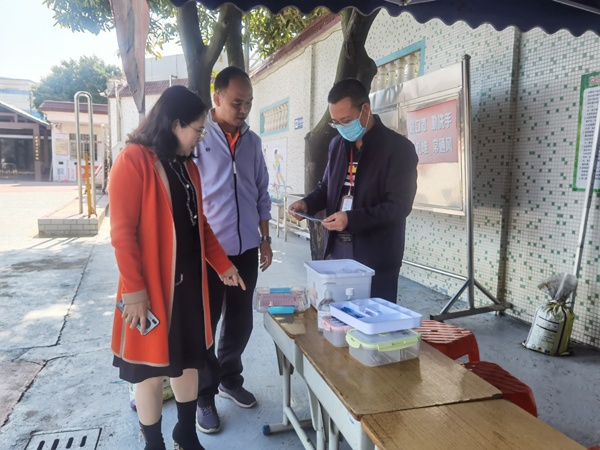 胡小明督學(xué)通過巡視校園,查閱資料,隨堂聽課等形式,針對校園文化、學(xué)校管理、條件保障等方面進(jìn)行了細(xì)致的檢查和指導(dǎo)。在巡視過程中,吳秀容校長向胡督學(xué)介紹了開學(xué)學(xué)校各項(xiàng)工作的進(jìn)展情況。胡督學(xué)細(xì)致詢問了學(xué)校的勞動教育及雙減政策的落實(shí)情況,并認(rèn)真查看學(xué)生晨午檢的臺賬,了解學(xué)校對發(fā)熱學(xué)生的管理和處置流程。