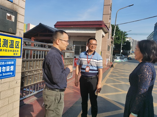 在校門(mén)口,胡小明督學(xué)自覺(jué)接受了體溫檢測(cè)并做好入校登記。首先,安樂(lè)小學(xué)吳秀容校長(zhǎng)詳細(xì)匯報(bào)了開(kāi)學(xué)以來(lái)安樂(lè)小學(xué)各項(xiàng)工作的開(kāi)展情況。接著,在吳秀容校長(zhǎng)的陪同下,胡小明督學(xué)查看了校門(mén)口家長(zhǎng)接送緩沖區(qū)、臨時(shí)健康觀察區(qū)、校醫(yī)室、留觀室、教室、食堂等場(chǎng)所,詳細(xì)了解了校園環(huán)境衛(wèi)生、教育教學(xué)、用餐管理、防疫物資儲(chǔ)備等情況,并對(duì)校園消防安全隱患作了深入排查。胡督學(xué)還細(xì)致了解了安樂(lè)小學(xué)疫情防控知識(shí)培訓(xùn)、應(yīng)急演練和校園封閉管理等學(xué)校疫情防控相關(guān)情況。胡小明督學(xué)對(duì)安樂(lè)小學(xué)各項(xiàng)工作給予了充分肯定,同時(shí)提出了一些中肯有效的改進(jìn)建議,為學(xué)校下一步工作明晰了思路。
