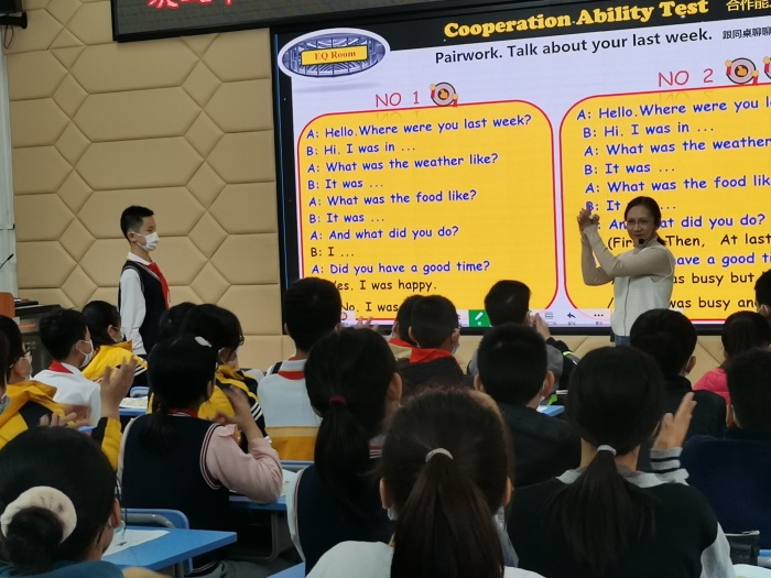 活動分兩個議程。首先,黃建妹老師給大家?guī)砹嘶浫税妗队⒄Z》六年級上冊Review 2的課例展示,以“天宮課堂”引入,為學(xué)生創(chuàng)設(shè)了一個真實有趣的情景,充分調(diào)動學(xué)生的學(xué)習(xí)積極性和主動性。黃建妹利用豐富有趣的教學(xué)活動,層層遞進(jìn),環(huán)環(huán)相扣,幫助學(xué)生回顧基本的語言知識、拓展課外知識,提升學(xué)生的思維品質(zhì)和語篇銜接的意識。