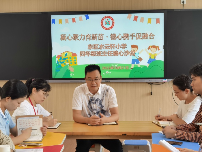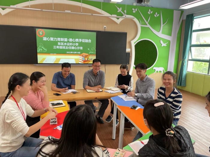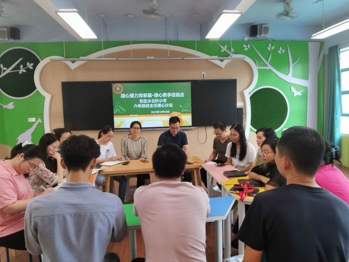 班主任是學(xué)校德育工作的靈魂,是助力學(xué)生成長的核心力量。10月10日—28日,為了解各班級需要關(guān)注的學(xué)生情況,幫助解決班主任在個人及班級管理中的困境,在學(xué)校德育處的組織下,心育科組開展“凝心聚力育新苗,德心攜手促融合”為主題的班主任德心沙龍活動。沙龍歷時三個星期,一至六年級共分六場進行。參與會議的除了各年級班主任、心育科組全體成員外,學(xué)校德育處副校長黃文燦、各年級的落級行政和級組長也出席會議。