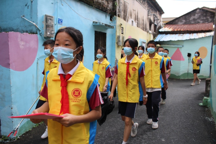 “小分隊(duì)”拿著宣傳單張、垃圾袋,提著擴(kuò)音箱穿街走巷,滾動(dòng)播放“防溺水致家長的一封信”,給路人、商店派發(fā)宣傳單張,提醒大家注意防溺水安全,同時(shí)不忘把路上的垃圾撿起放進(jìn)回收袋?!靶麄餍》株?duì)”從東裕路亨尾村路口開始,進(jìn)入村里,從起灣道榕樹頭位置返回學(xué)校,路線貫通整個(gè)亨尾村。他們?cè)谧哌^的街道、在穿過的小巷留下了宣傳防溺水安全的聲音,在路人和商店留下了防溺水安全的宣傳單,他們?cè)跒榉滥缢踩麄鞅M自己一份力。