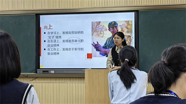 學(xué)習(xí)雷鋒同志“向上”的人生姿態(tài),鄭老師結(jié)合生情、校況,引導(dǎo)同學(xué)在學(xué)習(xí)上,發(fā)揚刻苦鉆研的“釘子”精神,以“擠”“鉆”的勁兒,克服各種困難;在生活上,發(fā)揚艱苦奮斗的創(chuàng)業(yè)精神,提醒同學(xué)們要保持樸素的優(yōu)良生活作風(fēng),勤儉節(jié)約,艱苦奮斗;在工作上,發(fā)揚忠于職守的敬業(yè)精神,啟示同學(xué)們腳踏實地,求真務(wù)實,努力做好本職工作,將小我融入大我,實現(xiàn)自我價值與社會價值的統(tǒng)一。