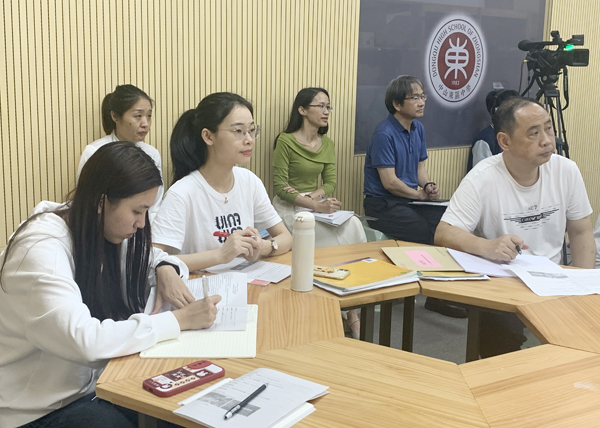 課后,潘澤輝老師和外語科組一起進行評課教研活動。首先,潘老師和科組長麥燕昌老師以及彭英老師對本次視導課進行了點評,老師們展開了積極活躍的教學研討。然后,潘老師就讀后續(xù)寫的一些教學實踐進行了有效有針對性的教學指導。潘老師還就高三備考的一些安排和策略以及新高考動態(tài)及方向進行了指導,同時對各年級的教學質(zhì)量進行了解和分析,也提出了希望。最后,潘老師鼓勵全體東中外語老師們要繼續(xù)充滿信心,大膽展示,提升自我,促進教學質(zhì)量的進一步提升。