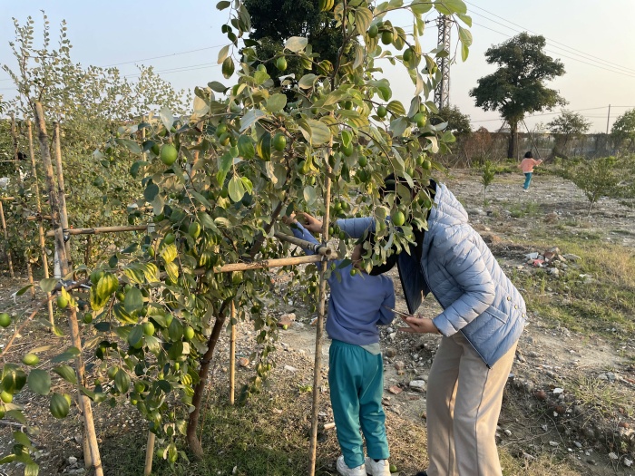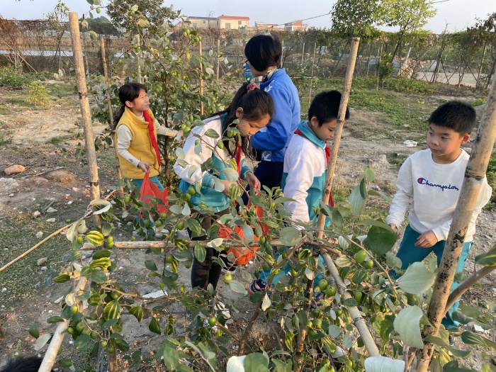 活動(dòng)前,詹前秒校長(zhǎng)和各班班主任向每位同學(xué)講述如何清理雜草、如何辨別青棗的成熟程度、如何根據(jù)成熟度來(lái)進(jìn)行正確的采摘,以及勞動(dòng)過(guò)程中的注意事項(xiàng),并且進(jìn)行了示范。認(rèn)真聽完老師指導(dǎo)并且完成了除草任務(wù)的同學(xué)們小心翼翼走進(jìn)青棗地里仔細(xì)觀察、尋找、挑選、詢問(wèn)、研究……最后再小心采摘。就像一群勤勞的小蜜蜂,采自然地 “花”,釀“知識(shí)”的蜜。第一次嘗試從播種到豐收,孩子們興奮不已,每張小臉上都掛著驕傲與喜悅。