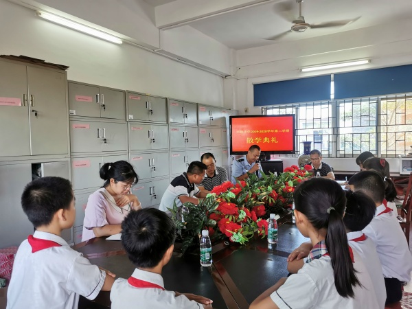 上午八點(diǎn)整,散學(xué)禮如期開始。由于當(dāng)天的高溫預(yù)警,為了學(xué)生們的健康和安全,散學(xué)禮主會場設(shè)在了學(xué)校會議室,各班教室為分會場,每班派一名學(xué)生代表在會議室出席散學(xué)典禮。同學(xué)們精神昂揚(yáng),帶著期待又緊張的心情認(rèn)真聽講。暑假將至,安全第一。首先,豐聯(lián)小學(xué)法治副校長林慶初警官給同學(xué)們進(jìn)行了假期安全教育,包括防火防盜防詐騙等等,特別提醒了防溺水和防疫的注意事項(xiàng)。林警官強(qiáng)調(diào),安全無小事,生命是最寶貴的,希望同學(xué)們認(rèn)真遵照執(zhí)行,過一個(gè)愉快又安全的暑假。