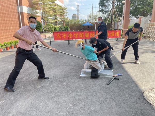 為進一步加強學(xué)校安全保衛(wèi)工作的聯(lián)防聯(lián)動,努力實現(xiàn)“平安校園”總體工作目標(biāo),4月28日下午,中山市實驗小學(xué)教育集團大豐小學(xué)開展了校園“防暴反恐”培訓(xùn)及應(yīng)急模擬演練。