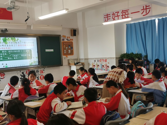活動伊始,大豐小學的吳倩瑩老師和民主小學的郭竹平老師依次呈現(xiàn)了兩節(jié)精彩的課例,兩位青年教師同課異構(gòu),執(zhí)教了《鳥的天堂》,別樣的課堂,卻有著一樣的精彩。吳倩瑩老師緊扣課題,在“三步導學”課堂教學模式的指導下,引導學生進行學法遷移,使學生腳有著點,有法可循。郭竹平老師巧妙打破文章結(jié)構(gòu),讓學生抓住關(guān)鍵句子思考“鳥的天堂”為何是鳥的天堂,讓學生的學習有的放矢。