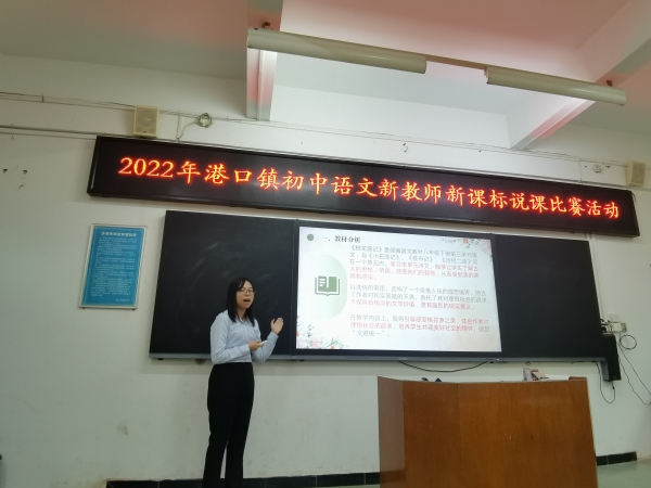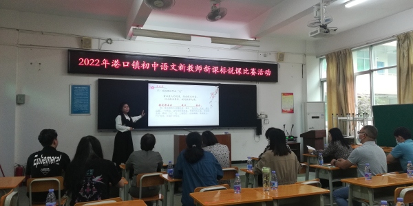 為了讓新教師熟悉2022年版義務(wù)教育語文課程標(biāo)準(zhǔn),探索新課程標(biāo)準(zhǔn)實(shí)施途徑和方法,提升新教師自身的教學(xué)技能,促進(jìn)新教師的成長,11月23日下午,港口鎮(zhèn)初中語文新教師新課標(biāo)說課比賽活動(dòng)在大南中學(xué)舉行。鎮(zhèn)教育和體育事務(wù)中心教研專干蘇少偉、陳輝老師及全鎮(zhèn)初中語文教師參加了本次活動(dòng)。本次活動(dòng)共有邱彤、葛利嬌等12位新教師入圍決賽。