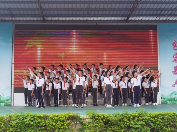 緊接著,學校黨支部書記林宗技帶領少先隊員回顧黨的歷史。從五四運動的號角,到共產(chǎn)黨的建立;從國共合作開始,到南昌起義;從星星之火的井岡山,到革命圣地延安;從敵后的抗日,到解放全中國,每一階段無不是一部部血淚史。但是黨始終站在人民的立場,沒有在艱難險阻下挫敗,反而更加的成熟,并且不斷的成長壯大,最終成為歷史的勝利者。林書記告誡隊員們,生在新時代,在黨的陽光哺育下,我們紅領巾要心向黨,爭做新時代的一名好隊員并號召同學們努力學習,從自己做起、從小事做起,從身邊做起,不辜負習爺爺?shù)膰谕?,努力爭做新時代好少年。