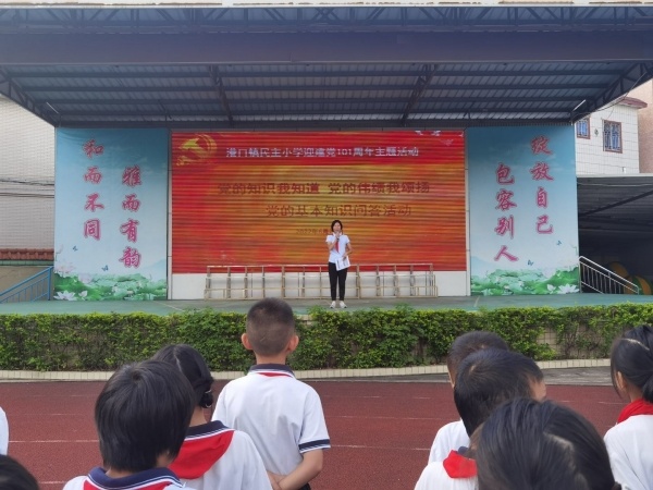 最后,學校大隊輔導員組織開展了“黨史、隊史”知識問答活動。只見現(xiàn)場氣氛熱烈,隊員們正確地回答了每一道題目,這不僅讓隊員們對黨史和隊史有了更加深刻地認識,同時也增強了他們愛黨、愛國的樸素情感。