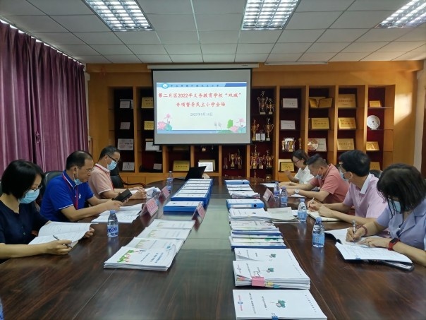 為了進一步指導(dǎo)學(xué)校規(guī)范辦學(xué)行為,落實“雙減”工作,進一步做好2022年秋季學(xué)期疫情防控工作,9月14日上午,民主小學(xué)迎來第二片區(qū)2022年義務(wù)教育學(xué)校“雙減”專項督導(dǎo)檢查,督導(dǎo)組專家小欖鎮(zhèn)教育和體育事務(wù)中心的張宏齊副主任、李正可校長、陳凱冰主任到學(xué)校進行實地督導(dǎo)檢查工作。民主小學(xué)黨支部書記、校長林宗技及學(xué)校行政團隊全程陪同檢查。