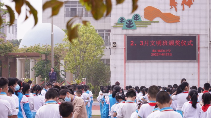 2022月4月21日上午大課間,群眾小學(xué)少先隊(duì)少工委舉行二、三月份“爭創(chuàng)文明班”小結(jié)頒獎活動。