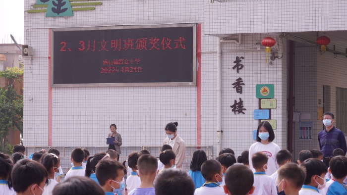 首先,大隊(duì)輔導(dǎo)員胡嬋媛老師對同學(xué)們二、三月表現(xiàn)好的方面和有待改進(jìn)的不良現(xiàn)象進(jìn)行小結(jié);接著,梁銓華校長、蘇小蓉副校長、郭南洪主任為獲得“文明班”、“星級文明班”榮譽(yù)稱號的班級頒獎。最后,梁校長講話。他希望同學(xué)們爭當(dāng)文明生,為爭創(chuàng)文明班出一份力,并就疫情防控、交通安全、防溺水等方面向全體師生進(jìn)行了安全教育。