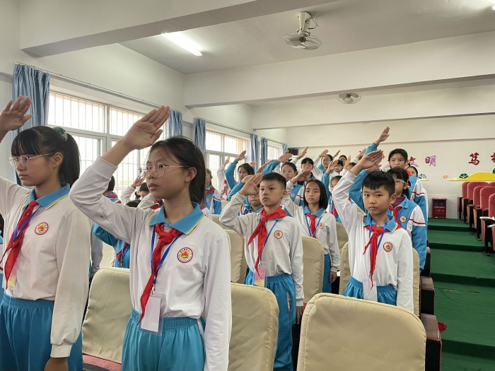 “準備著,為共產主義事業(yè)而奮斗”,學校少工委總輔導員胡嬋媛老師帶領全體少先隊員呼號。伴隨著退旗曲的奏響,中國少年先鋒隊中山市港口鎮(zhèn)群眾小學第二次代表大會順利閉幕。群眾小學少工委將順應時代發(fā)展,不斷改革創(chuàng)新,團結帶領全體少先隊員始終聽黨的話,跟黨走,爭當新時代好隊員!