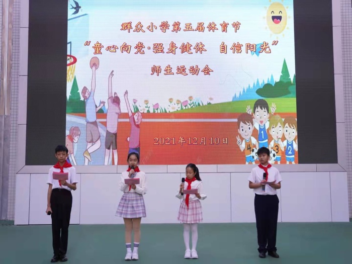 為進(jìn)一步豐富校園文化生活,增強(qiáng)學(xué)生體質(zhì),培養(yǎng)學(xué)生積極進(jìn)取的拼搏精神,鼓勵(lì)學(xué)生積極參與體育鍛煉,也為營(yíng)造良好的體育文化氛圍,推動(dòng)學(xué)校精神文明建設(shè),2021年12月10日,群眾小學(xué)全體師生相聚美麗的校園,舉行第五屆“童心向黨·強(qiáng)身健體 自信陽(yáng)光”師生校運(yùn)會(huì)。
