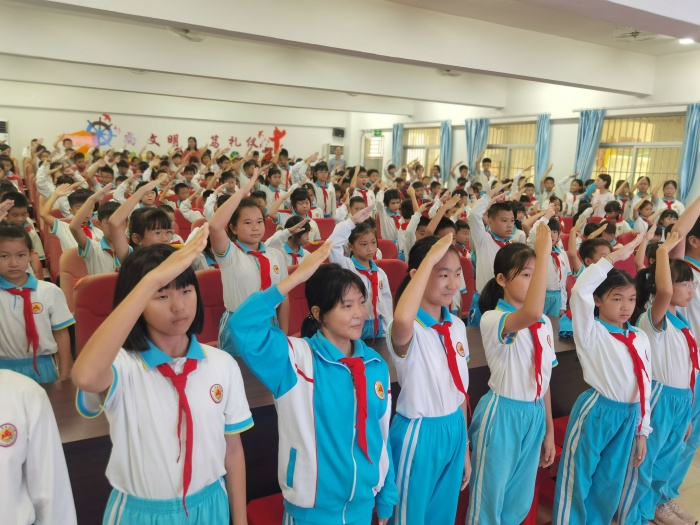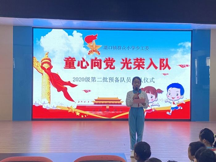 伴隨著祖國前進(jìn)的步伐,中國少年先鋒隊(duì)走過了72年的光輝歷程。為了深入學(xué)習(xí)領(lǐng)會(huì)習(xí)近平總書記關(guān)于少年兒童和少先隊(duì)工作的重要論述,增強(qiáng)少先隊(duì)員的光榮感和組織歸屬感,10月14日下午,港口鎮(zhèn)群眾小學(xué)舉行“童心向黨,光榮入隊(duì)”——2020級第二批預(yù)備隊(duì)員入隊(duì)儀式,團(tuán)結(jié)、教育、引領(lǐng)少先隊(duì)員健康成長。