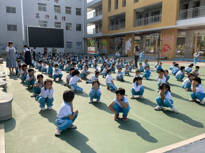 首先,各班班主任分別從三個(gè)不同場(chǎng)景給同學(xué)們做了詳細(xì)的逃生講解:地震逃生方式——地震前或輕微搖動(dòng)時(shí)應(yīng)立即往樓下空曠的地方逃避;地震中在教室里的學(xué)生,應(yīng)立即鉆進(jìn)桌椅下或墻角躲避,身體采用臥倒或蹲下的方式?;馂?zāi)逃生方式——用毛巾或手捂住口鼻,半彎著腰往樓下空曠的地方逃生。防空襲逃生方式——迅速往樓下空曠的地方逃生,到達(dá)運(yùn)動(dòng)場(chǎng)后疏散集合、不扎堆、趴下避免被炮彈擊傷。并且向同學(xué)們明確表示:無(wú)論發(fā)生任何突發(fā)事件,都要保持鎮(zhèn)定,切莫驚慌失措,也不要匆忙逃離教室。同學(xué)們都能認(rèn)真、細(xì)致聽(tīng)從老師的指導(dǎo),并能在相對(duì)應(yīng)的場(chǎng)景里做規(guī)范的模擬動(dòng)作。