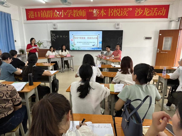 為探究教師引導(dǎo)“整本書悅讀”的課堂教學(xué)方法,提高教師課堂教學(xué)能力,激發(fā)學(xué)生閱讀的興趣,提高師生閱讀能力,4月18日下午,港口鎮(zhèn)群眾小學(xué)舉行 2022 學(xué)年教師“整本書悅讀”沙龍活動(dòng)。此次活動(dòng)邀請(qǐng)港口鎮(zhèn)教育和體育事務(wù)中心蘇彩南老師和兄弟學(xué)校的領(lǐng)導(dǎo)、老師們蒞臨指導(dǎo)工作。