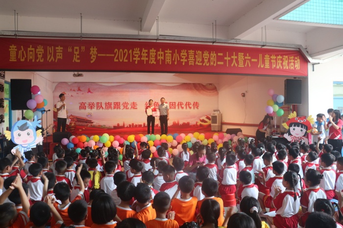 六月的陽光燦爛奪目,六月的鮮花絢麗多彩,六月的孩子們笑容如鮮花般盛放。為了讓學生們度過一個歡快的“六一”兒童節(jié),豐富學生們的課外生活,培養(yǎng)學生德、智、體、美、勞全面發(fā)展,5月31日上午,中山市港口鎮(zhèn)中南小學舉行足球文化節(jié)閉幕式暨慶“六一”班級合唱比賽活動。早上九點,校園內熱鬧非凡,師生們歡聚在一起,共同慶?!傲弧眱和?jié)。港口鎮(zhèn)副鎮(zhèn)長易昊宏、港口鎮(zhèn)教體文旅局副局長劉長路、港口鎮(zhèn)教育和體育事務中心、副主任張育文、中南村黨委書記黃敬文、中南村副書記陳志球、中南村農(nóng)商銀行行長李捷等領導參加了此次活動。